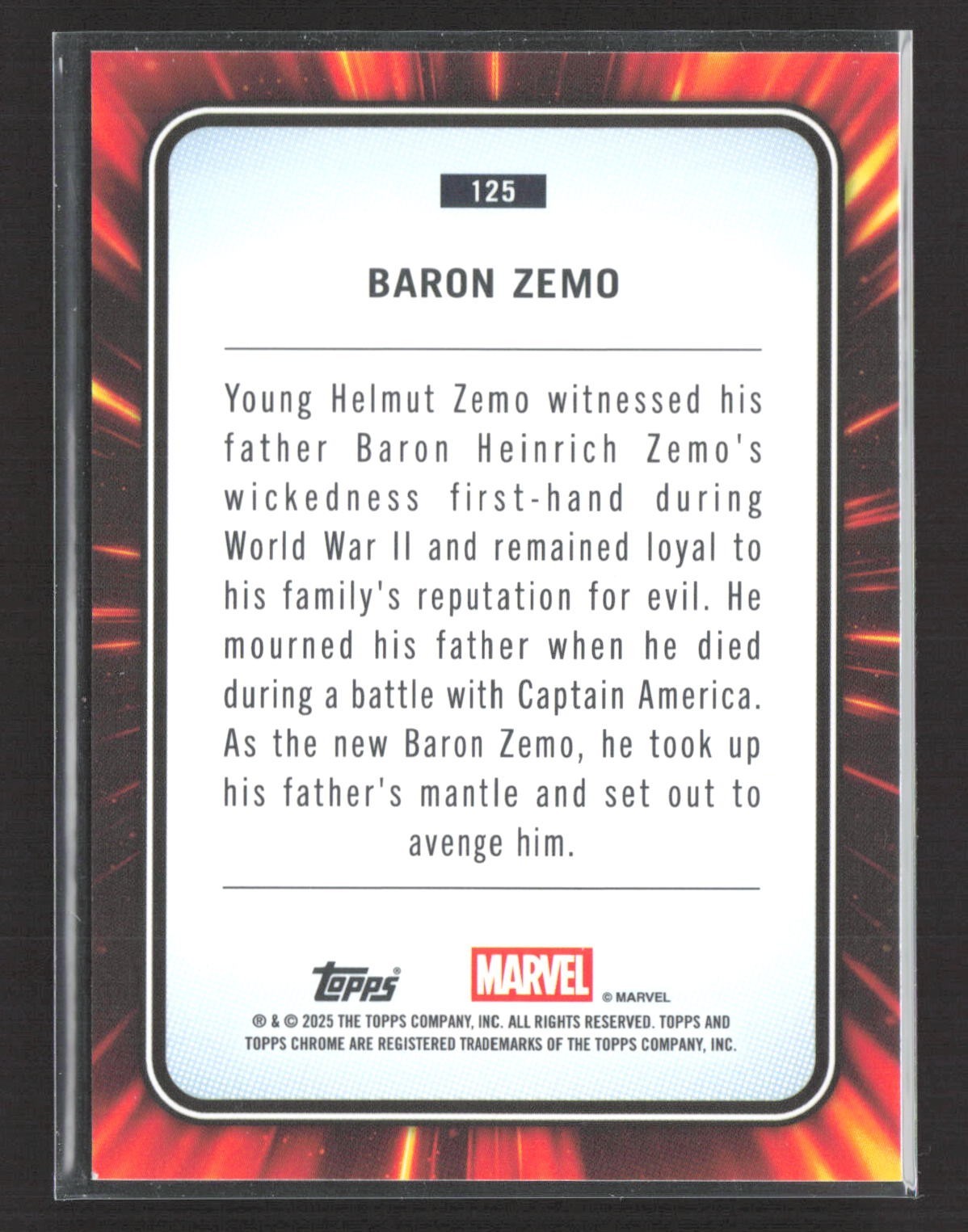 2025 Topps Chrome Marvel Sapphire Baron Zemo Green /99 #125