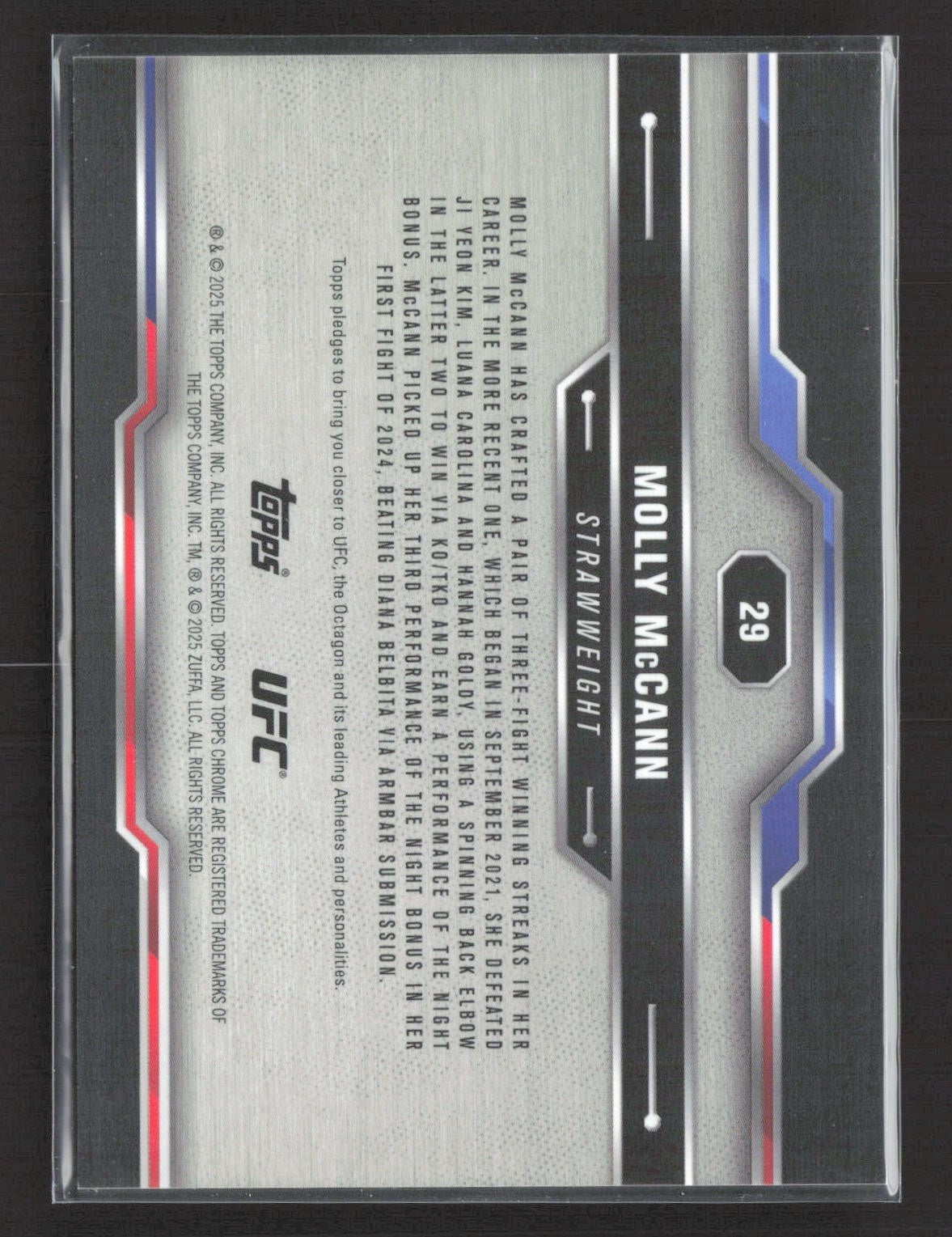 2025 Topps Chrome UFC Sapphire Molly McCann #29 Padparadscha 1/1