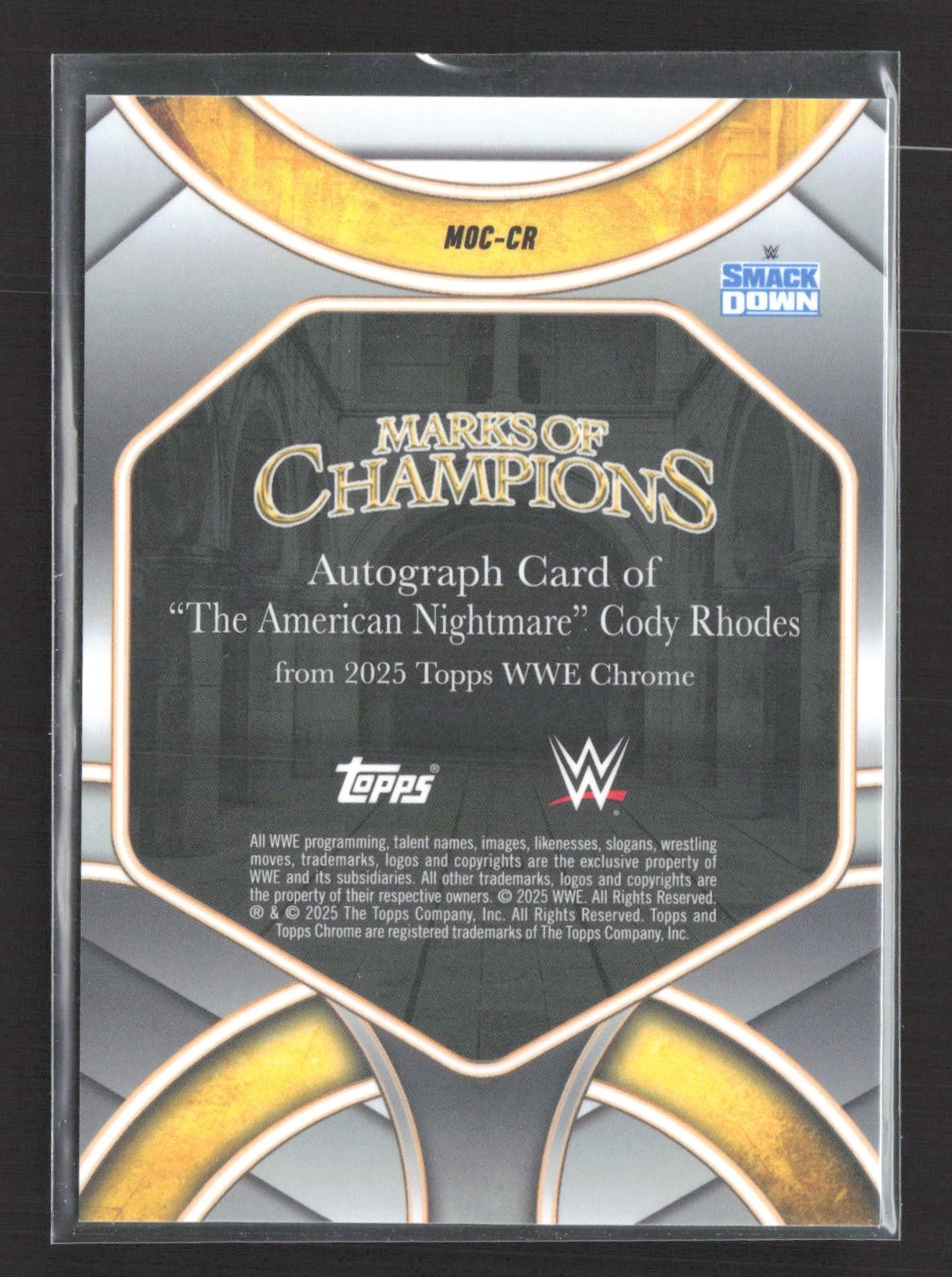 2025 Topps Chrome WWE Marks of Champions Auto Cody Rhodes Blue Refractor /150