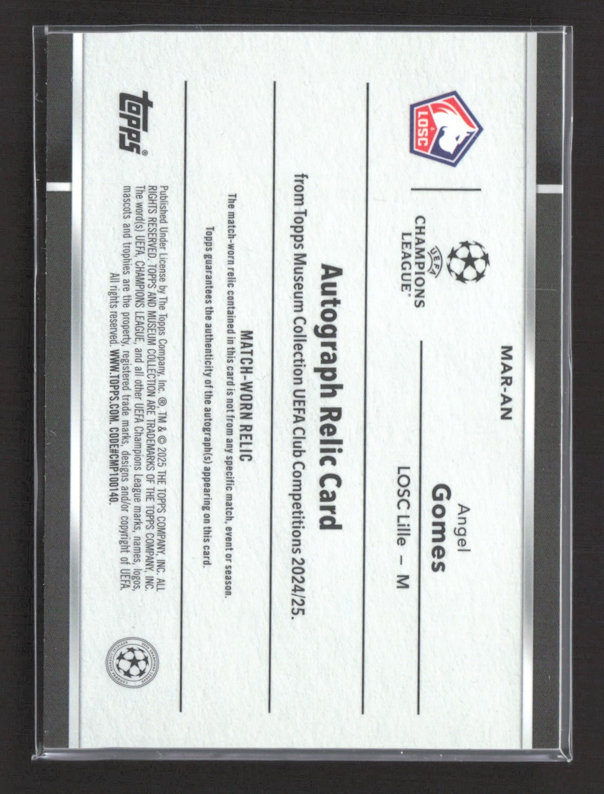 2025 Topps Museum Angel Gomes Jersey Relic Auto Purple /99 #MAR-AN