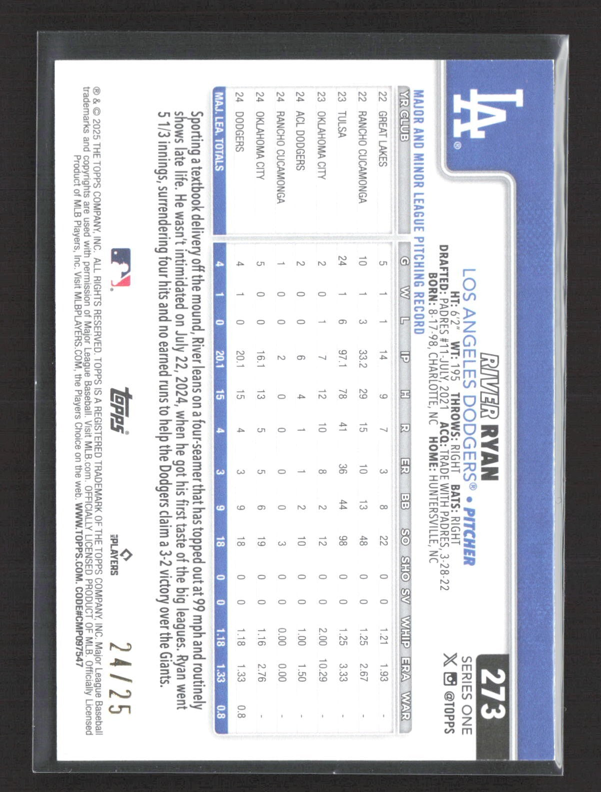 2025 Topps Series 1 - River Ryan #273 (RC) Wood Stock /25