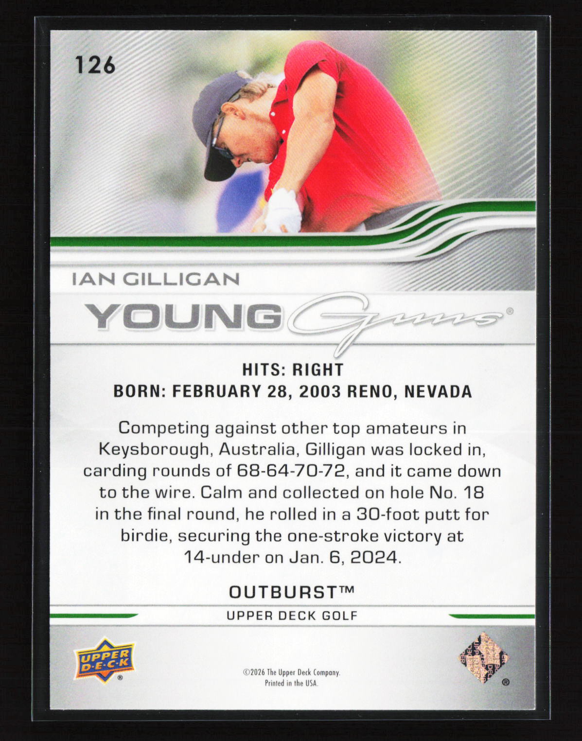 2026 Upper Deck Golf Young Guns Outburst Ian Gilligan #126