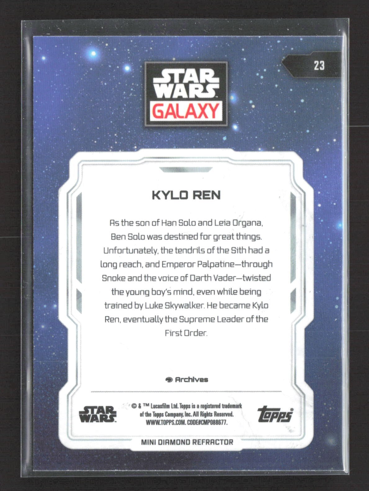 Kylo Ren - 2024 Topps Chrome Star Wars Galaxy #23 Mini Diamond Refractor