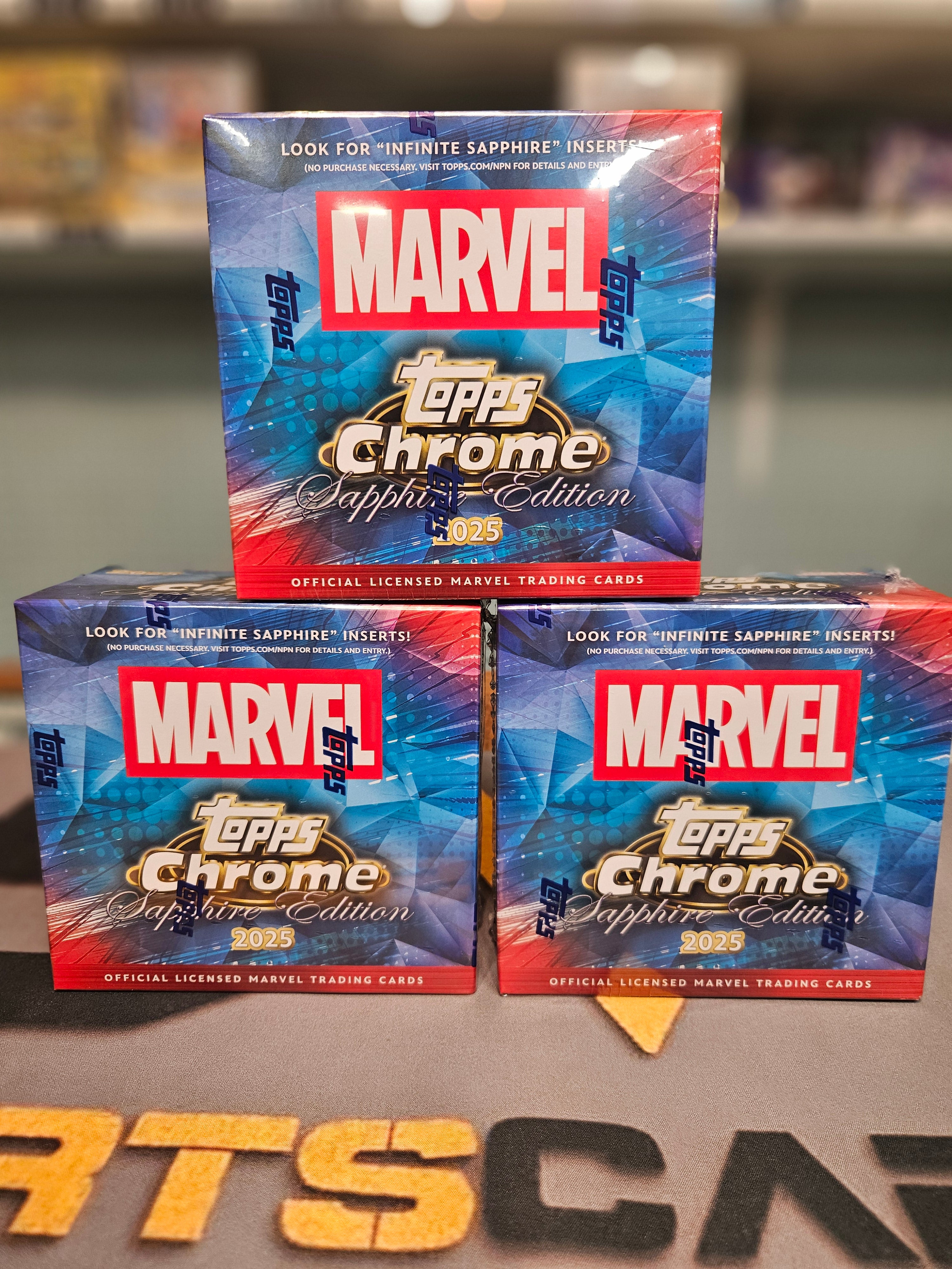 Marvel 2025 Topps Chrome Marvel Sapphire Box Share WhatsApp Deel X Pin it Messenger Email Product form 9 in stock $1,350.00 Excl. VAT Quantity Add to cart This item is a recurring or deferred purchase. By continuing, I agree to the cancellation policy and authorize you to charge my payment method at the prices, frequency and dates listed on this page until my order is fulfilled or I cancel, if permitted.