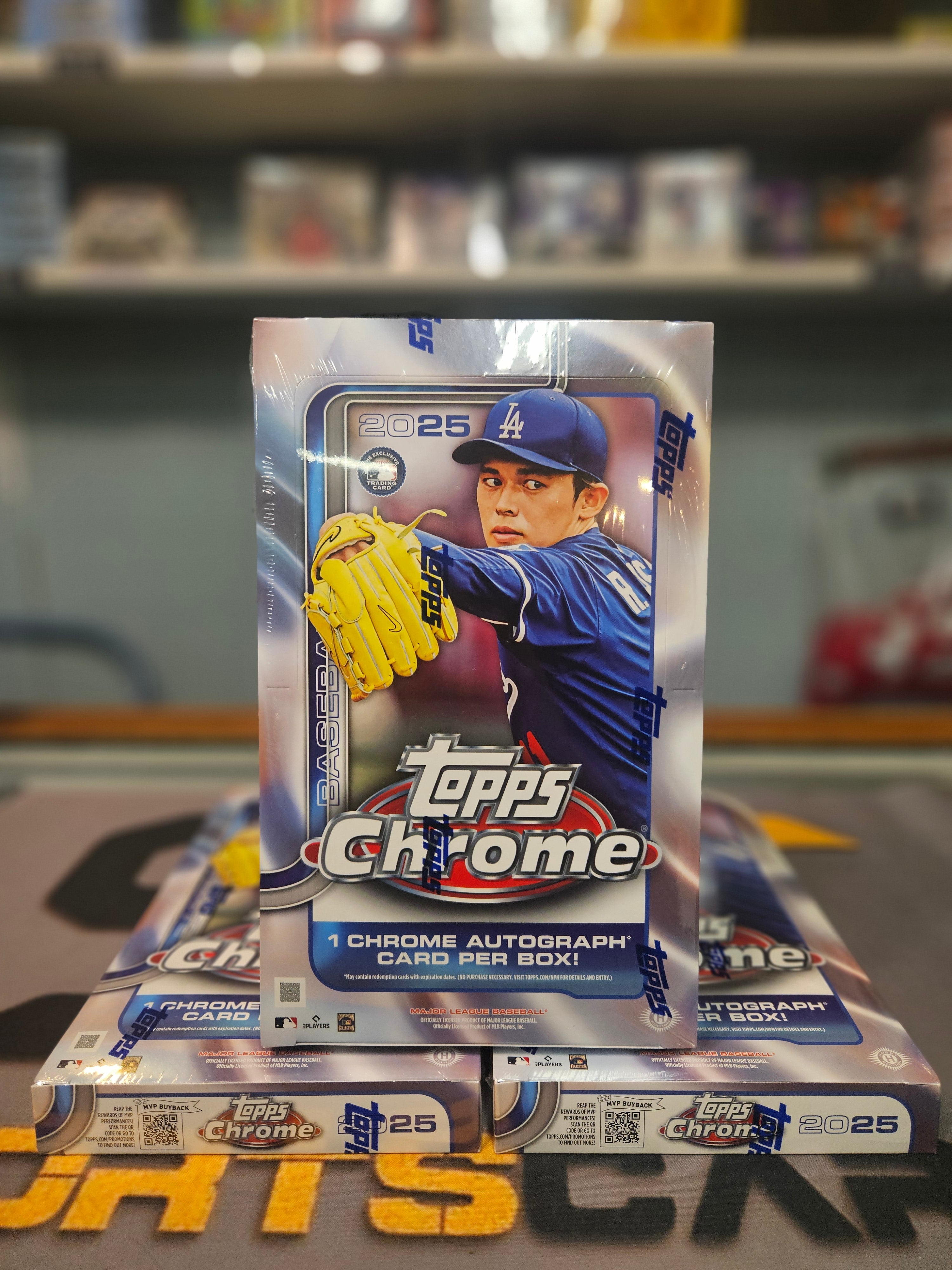 MLB 2025 Topps Chrome Baseball Hobby Box Share WhatsApp Deel X Pin it Messenger Email Product form $295.00 Excl. VAT Quantity Add to cart This item is a recurring or deferred purchase. By continuing, I agree to the cancellation policy and authorize you to charge my payment method at the prices, frequency and dates listed on this page until my order is fulfilled or I cancel, if permitted.