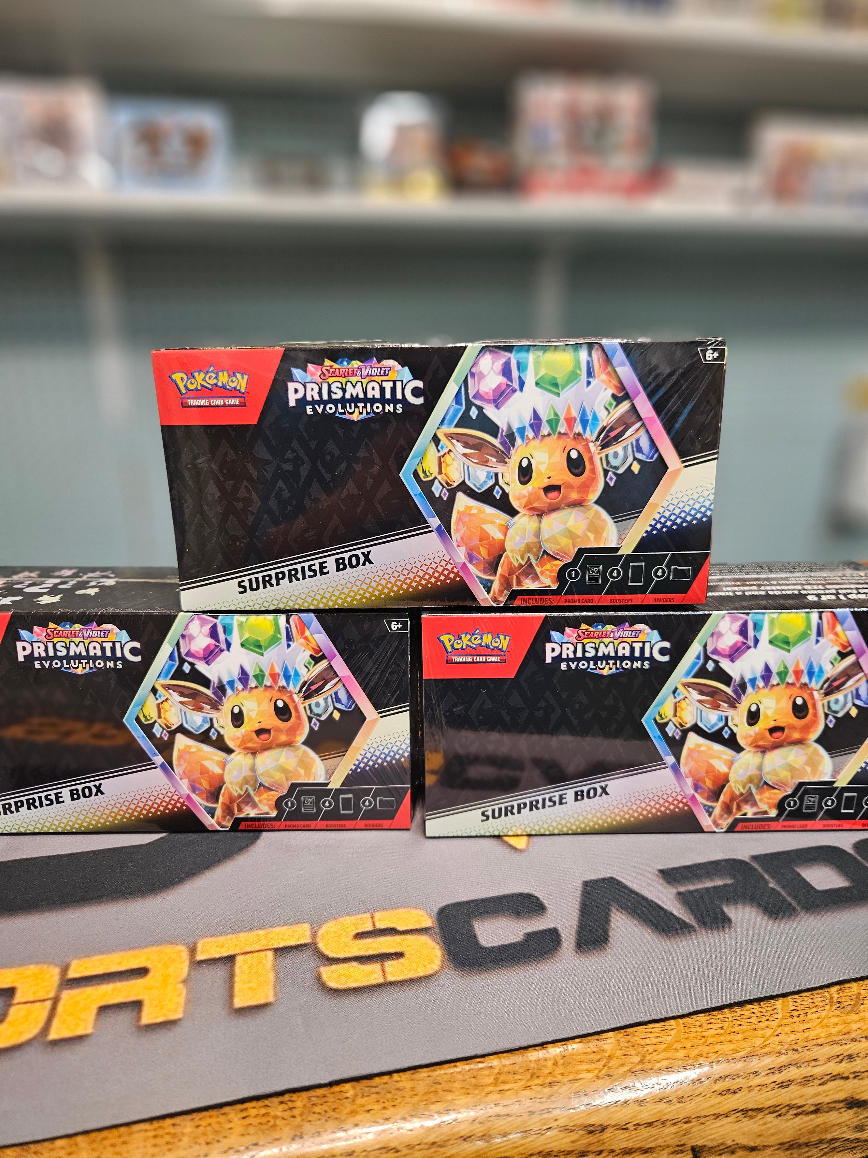 Reviews Pokemon Prismatic Evolutions Surprise Box 0 out of 5 stars This product has no reviews yet Write a review Write a review
