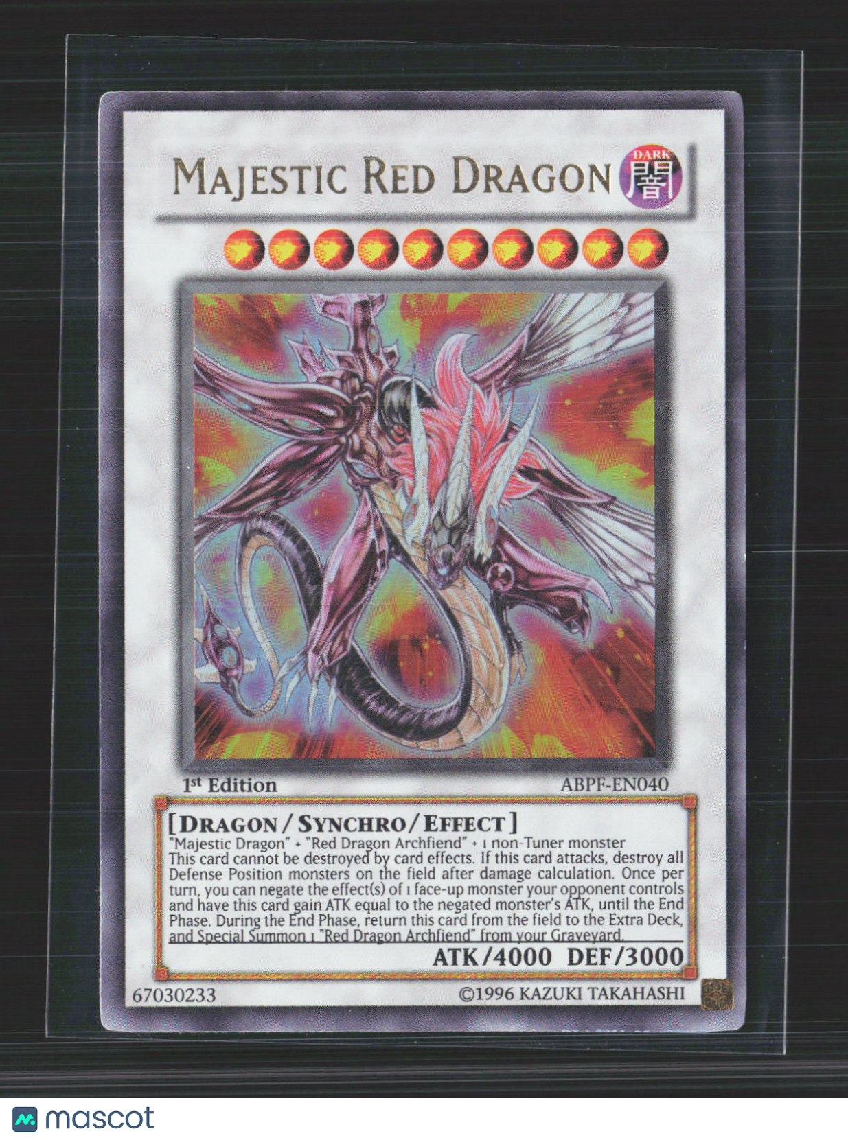 You are purchasing a Yu-Gi-Oh! TCG 2010 Absolute Powerforce Majestic Red Dragon 1st Edition #ABPF-EN040. Standard Envelope: First 3 items are standard shipping price ($1.71 each), all items after are and additional 50 cents. Max shipping price of $10 USPS Ground: First item standard price, each additional item is 50 cents Raw Card Condition Scale; Near mint or better: Potential Psa 7 or better Excellent: Potential Psa 5 or better Very Good: Potential Psa 3 or better Poor: Potential Psa 1 or better Listed With Mascot.