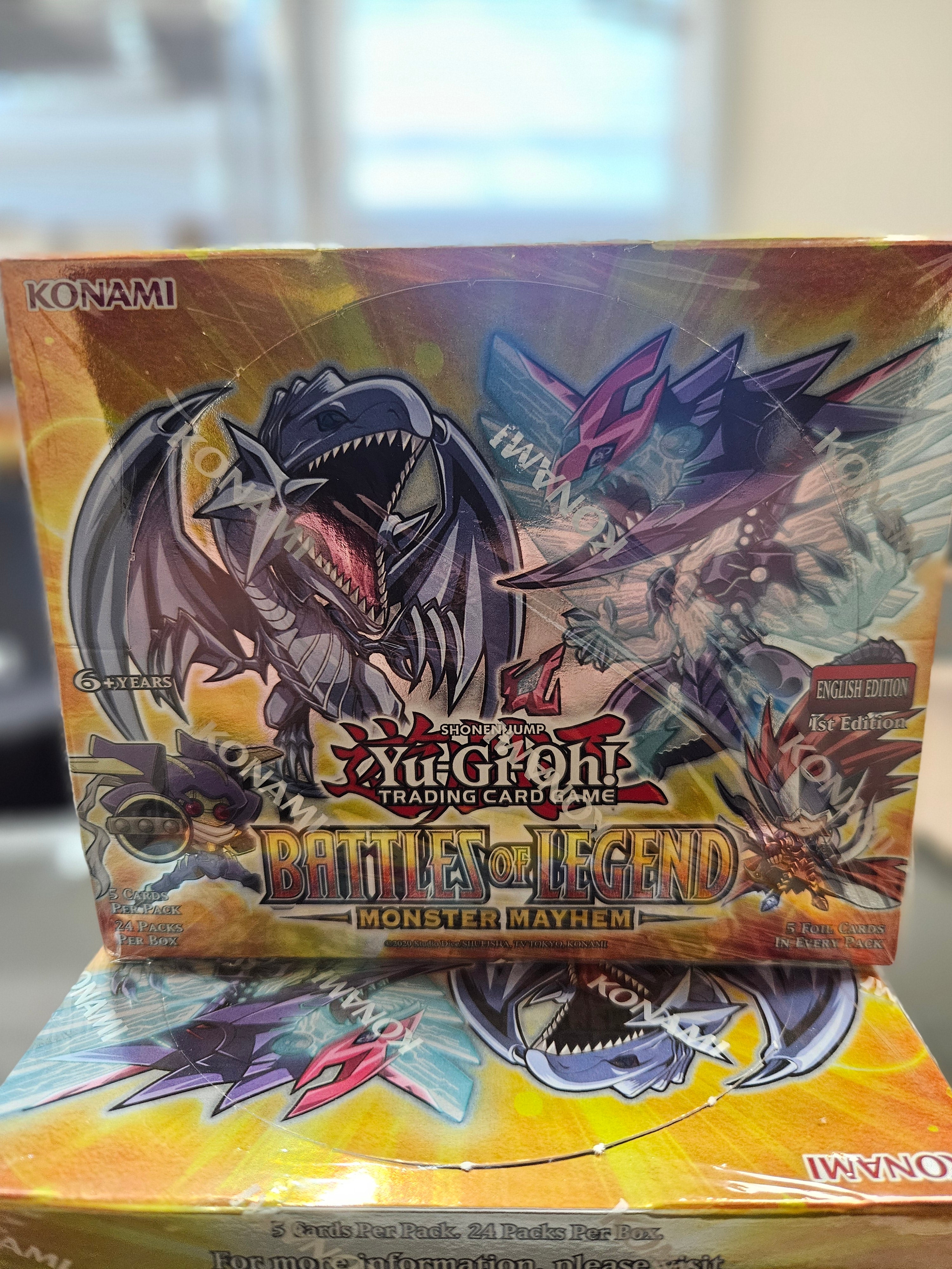 Yu-Gi-Oh Battles of Legend Monster Mayhem Booster Box Share WhatsApp Deel X Pin it Messenger Email Last stock! Product form 4 in stock $85.00 Excl. VAT Quantity Add to cart This item is a recurring or deferred purchase. By continuing, I agree to the cancellation policy and authorize you to charge my payment method at the prices, frequency and dates listed on this page until my order is fulfilled or I cancel, if permitted.